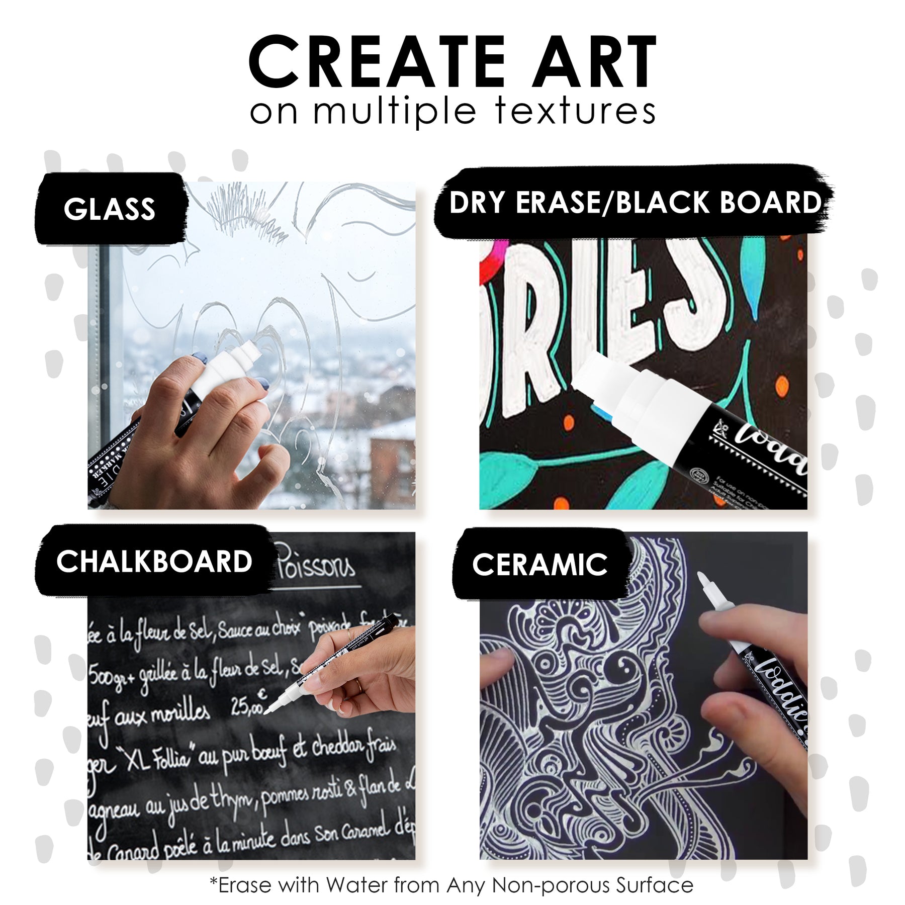 MULTI TIP CHALK MARKER- These specialized markers are perfect for those who want to create accurate and precise drawings. The chalk markers fine tip and multi tip together produces thick and thin lines that are perfect for detailed work.