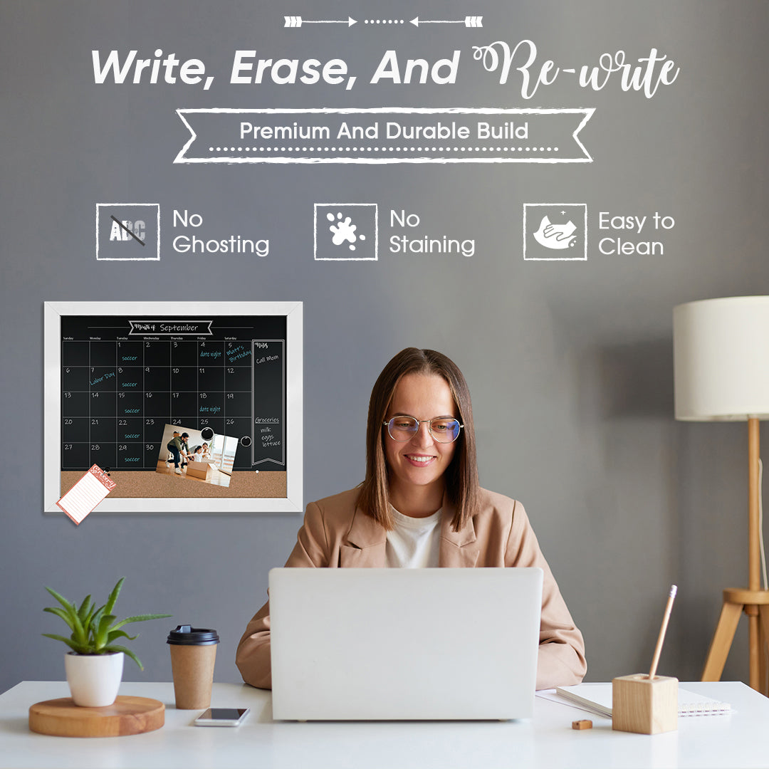 18x24 3N1 Magnetic Chalkboard Calendar Combo Kit- White Frame