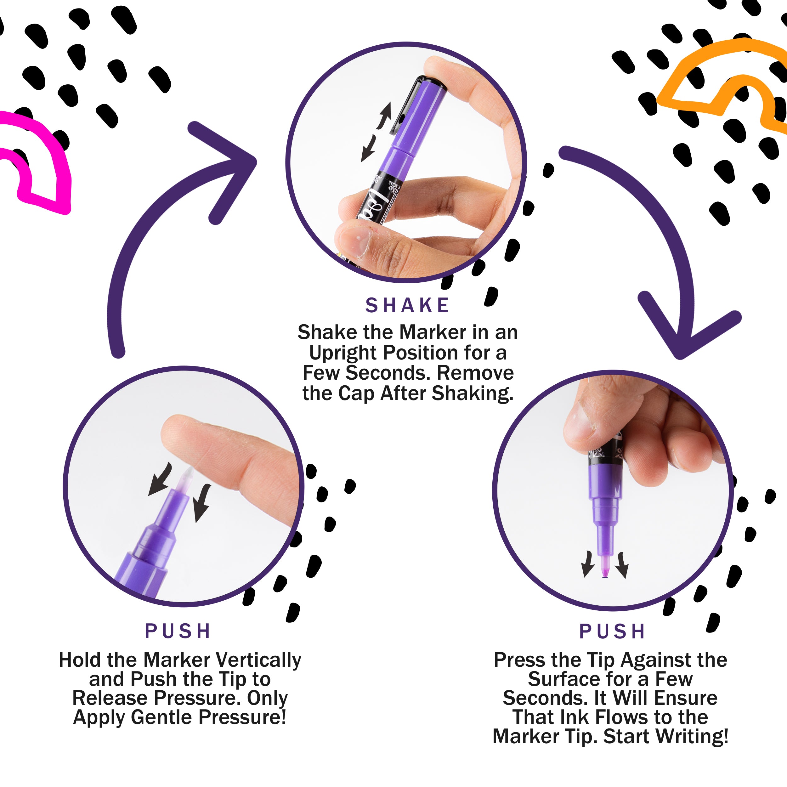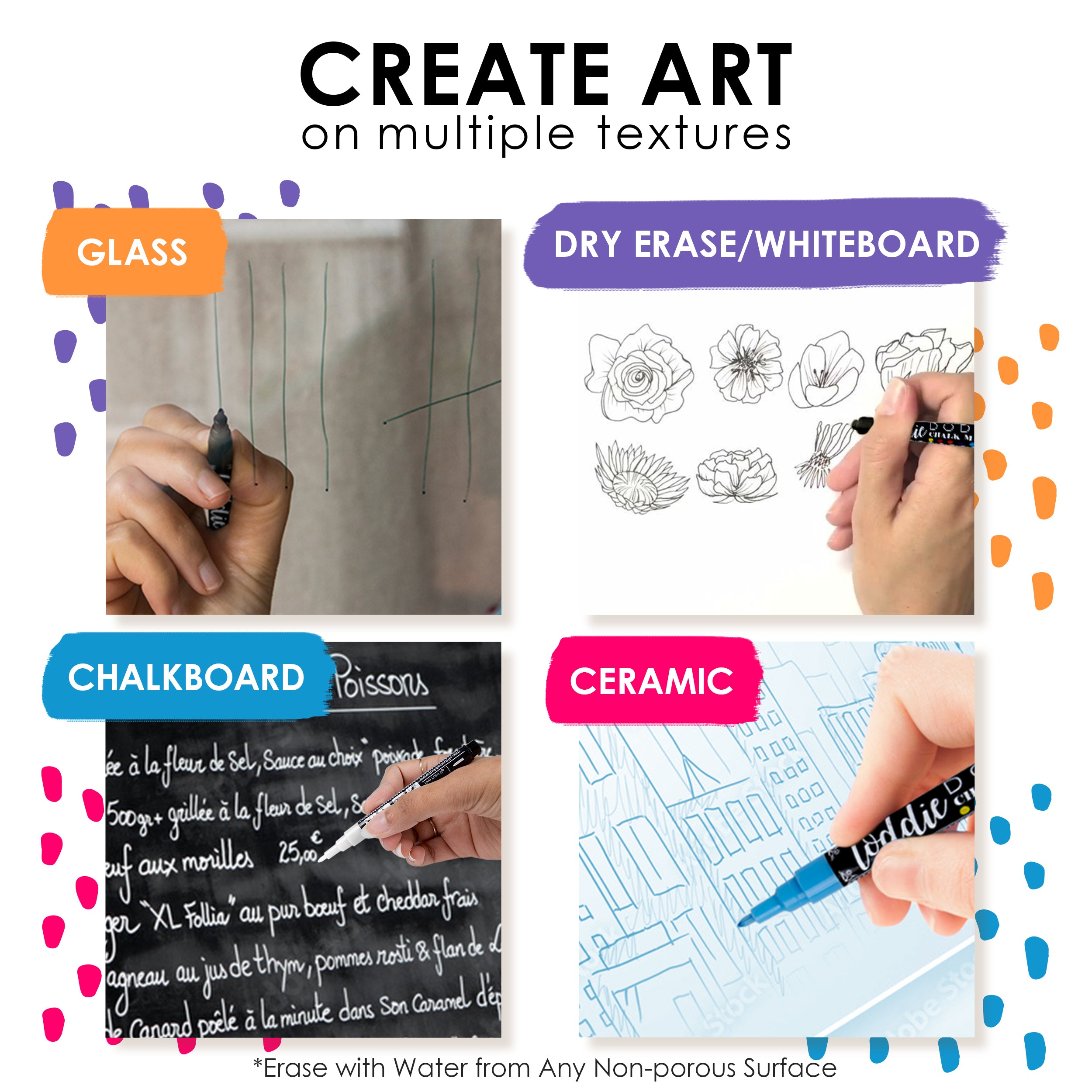 - FINE TIP CHALK MARKER- These specialized markers are perfect for those who want to create accurate and precise drawings. The chalk markers fine tip produces thin lines that are perfect for detailed work.