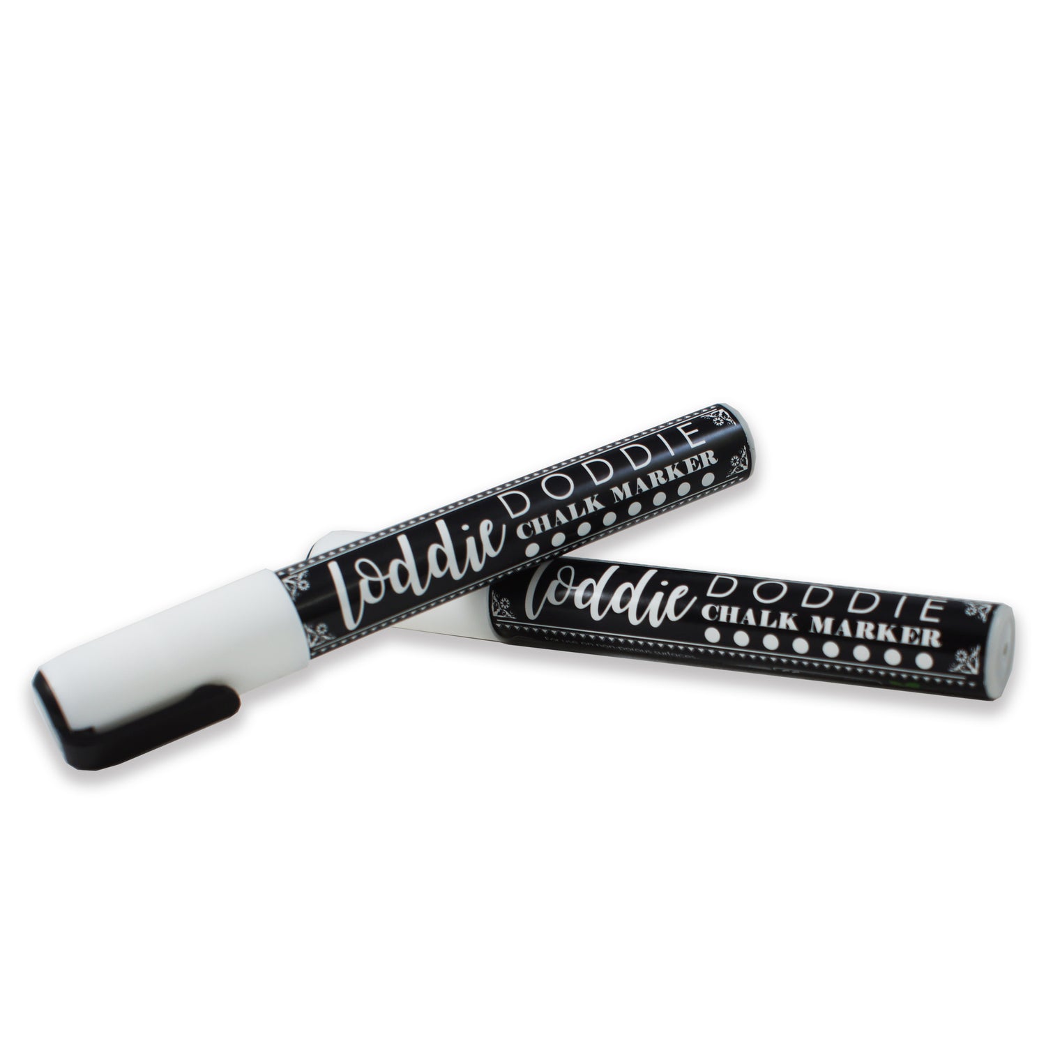 Loddie Doddie Chalk Markers use only high-quality, super-concentrated liquid chalk Ink and high-quality tips that provide a smooth ink lay down with an extremely bright and vivid result. Our quality inks will not stain or ghost on any non-porous surface. (Liquid chalk is not intended for chalk paint surfaces and will stain).