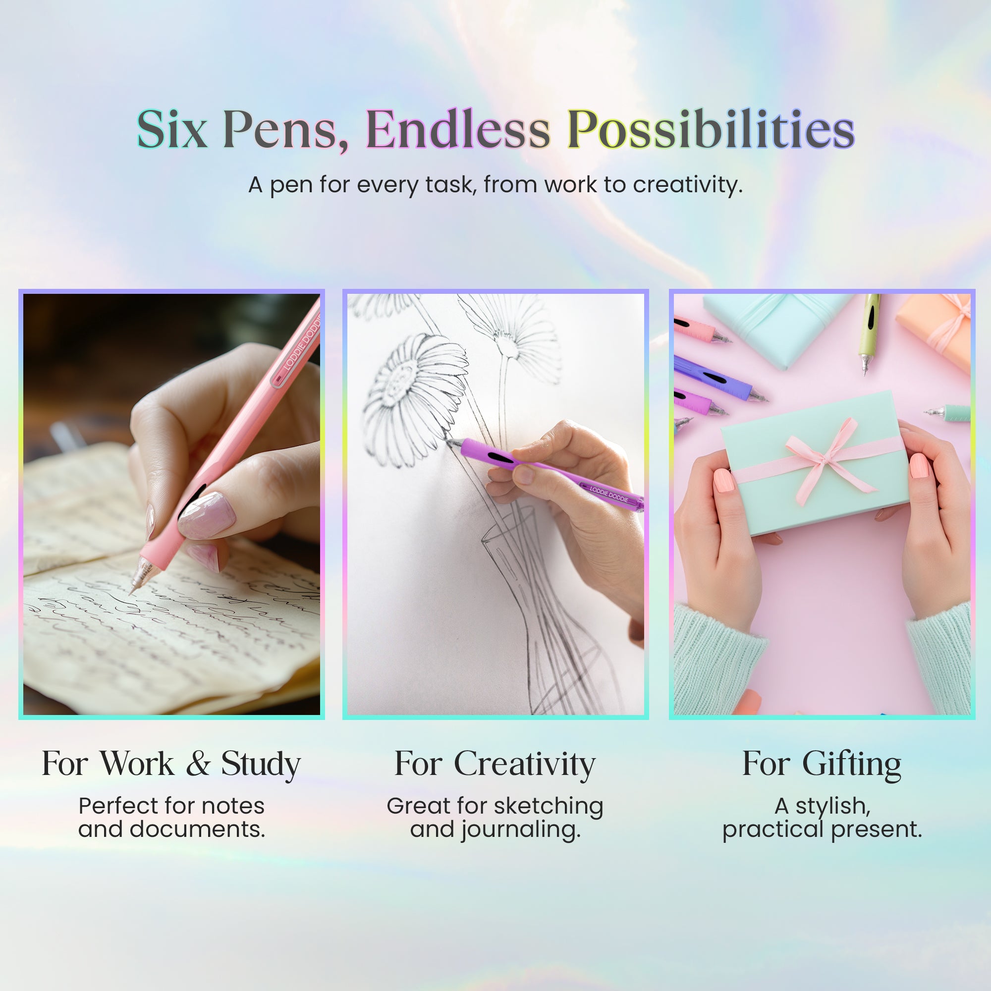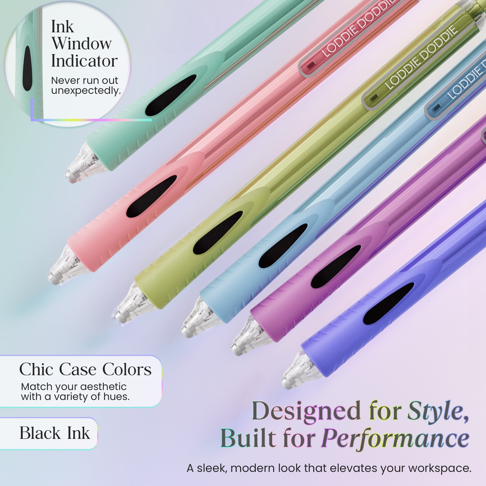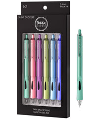 6ct Roller Gel Pens - Silent Clickers - Multi Color - Black Ink
