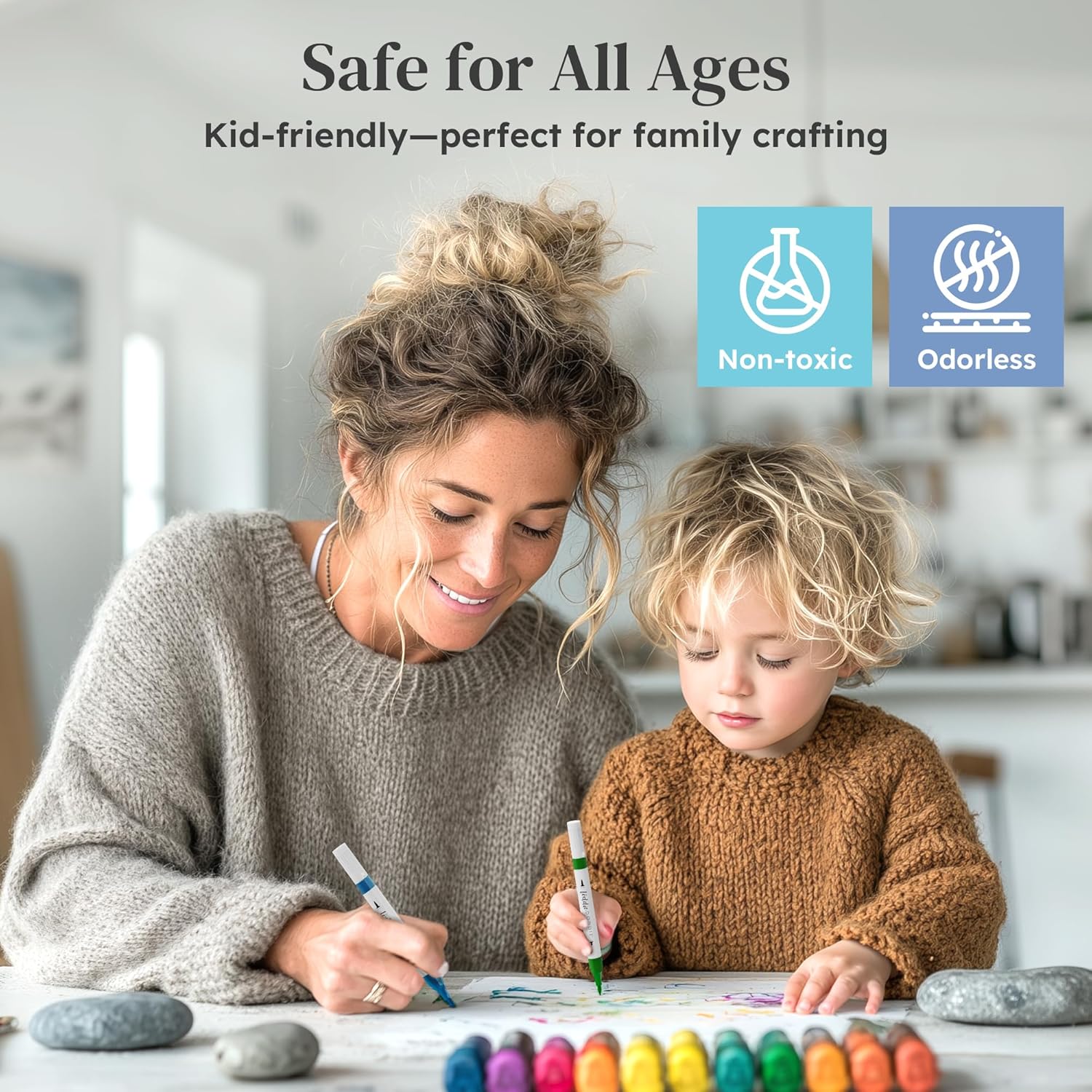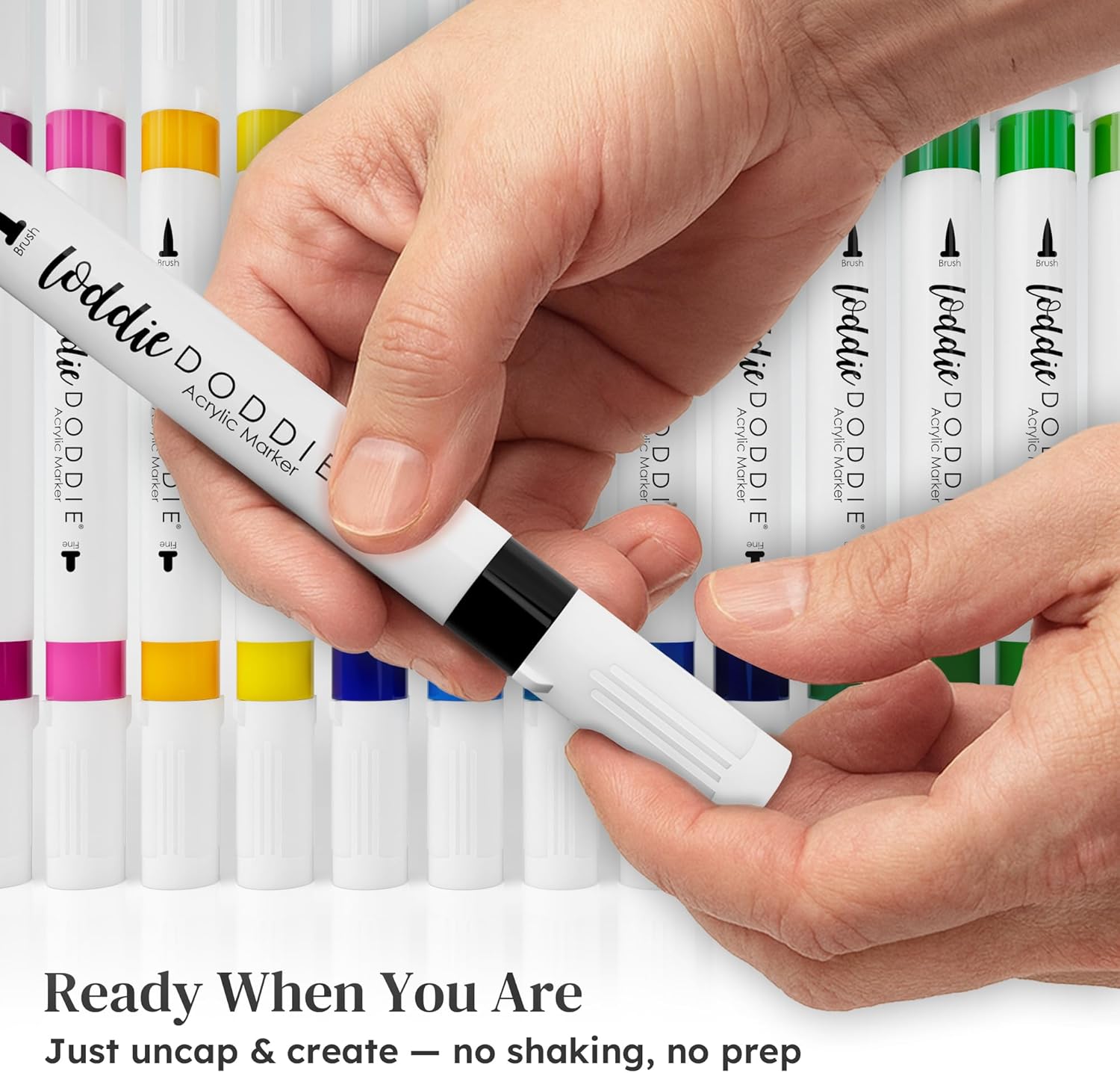 Unleash your artistic potential with Loddie Doddie's versatile 24-color acrylic marker set. These double-ended markers feature both fine and brush tips, giving you precise control for detailed work while also allowing broad strokes for larger areas. Perfect for creating vibrant artwork, customizing gifts, and bringing your DIY projects to life on both light and dark surfaces. The markers come organized in a durable, portable storage case that keeps your creative tools protected and ready for use anywhere inspiration strikes. Whether you're decorating, crafting, or exploring your artistic side, these multi-surface markers deliver vivid colors and smooth application. The convenient dual-tip design makes these markers incredibly versatile - use the fine tip for intricate details and lettering, then flip to the brush tip for filling larger areas and creating dynamic effects. The comprehensive set of 24 unique colors provides a rainbow of possibilities for all your creative endeavors.