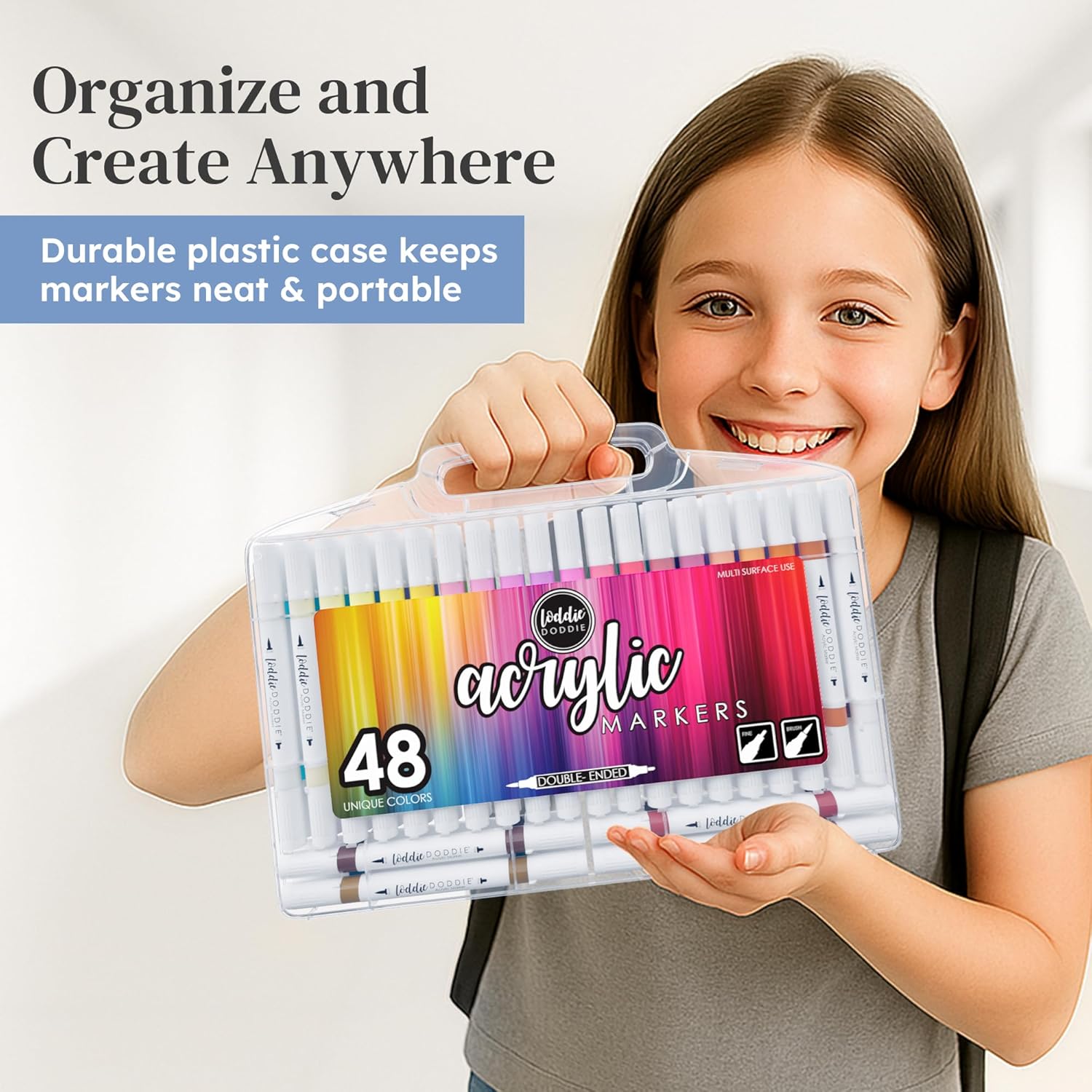 - VERSATILE SET: 24 or 48 unique colors of double-ended acrylic markers featuring both fine tip and brush tip for precise details or broad strokes