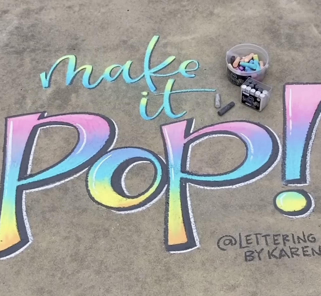 - Creative- Allow your creative mind to go wild with this big bucket of black and white sidewalk chalk! Create beautiful artwork on your sidewalk, driveway or street. Fun activity for boys, girls, teens and adults!