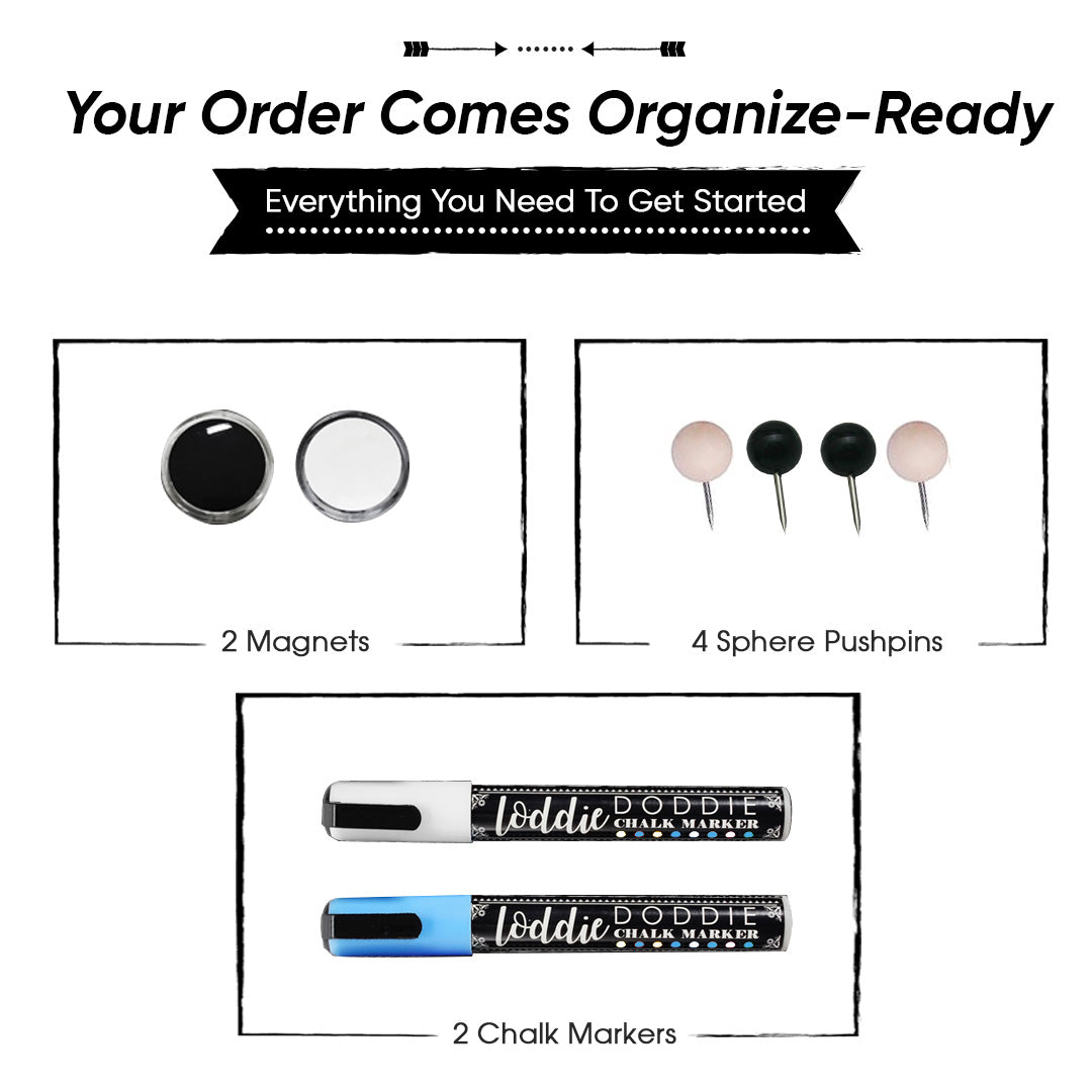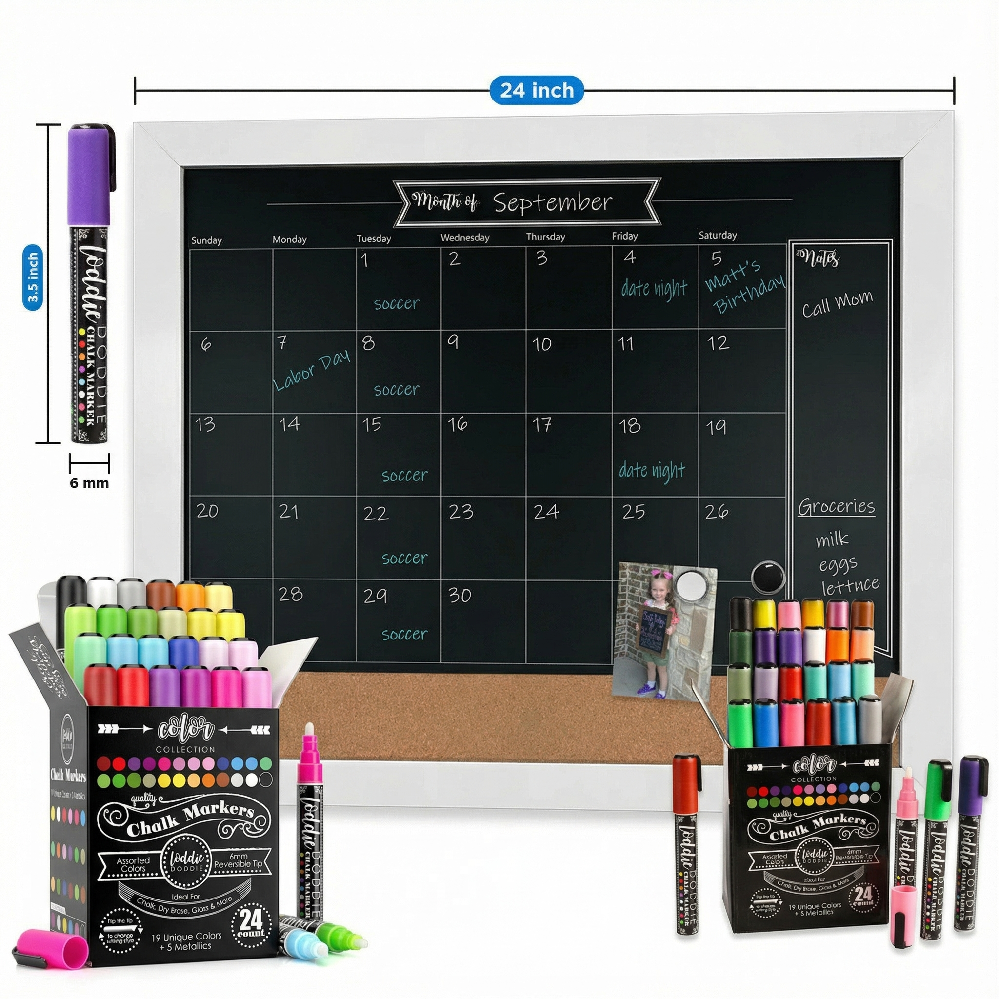 18x24 3N1 Magnetic Chalkboard Calendar Combo Kit- White Frame + 24ct Chalk Markers- Artists Assortment Bundle